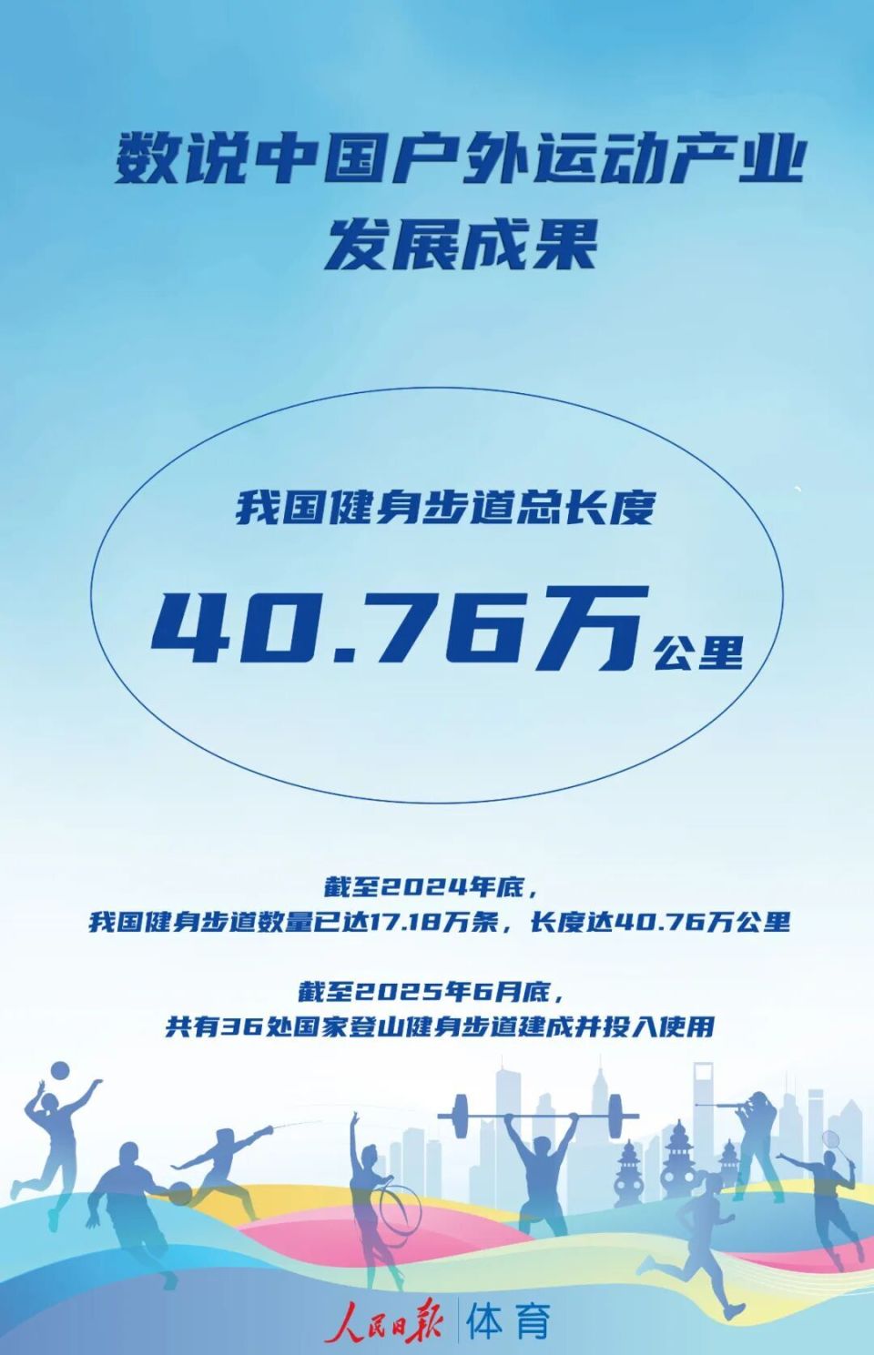 10月24日晚,2025中国户外运动产业大会在云南大理启幕。开幕式现场,国家体育总局体育经济司发布《中国户外运动产业发展报告(2024-2025)》(以下简称“报告”)。报告显示,截至2025年4月初,我国户外运动参与人数已突破4亿人;2024年冰雪运动产业总规模达9700亿元;全国健身步道17.18万个,总长度40.76万公里……